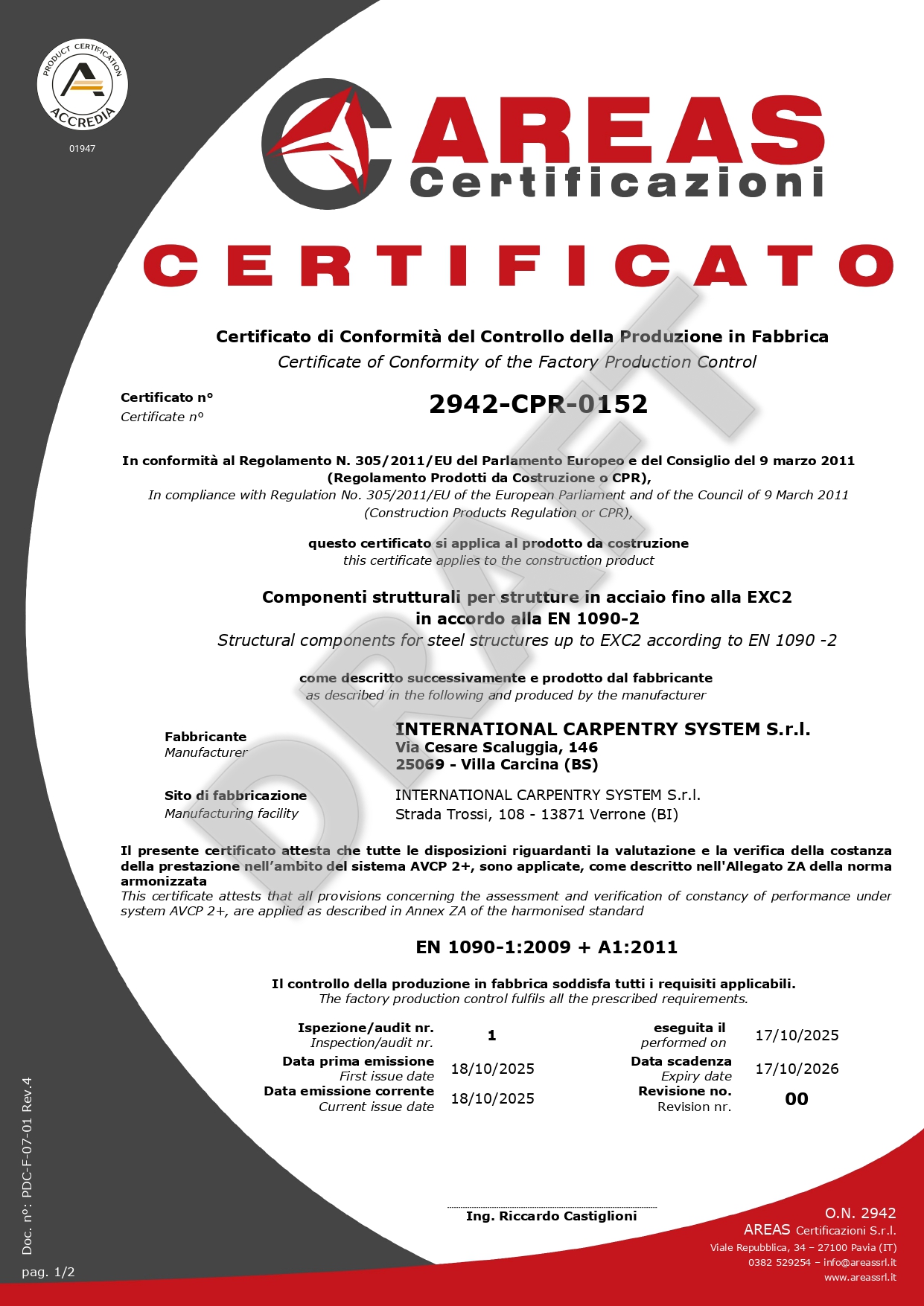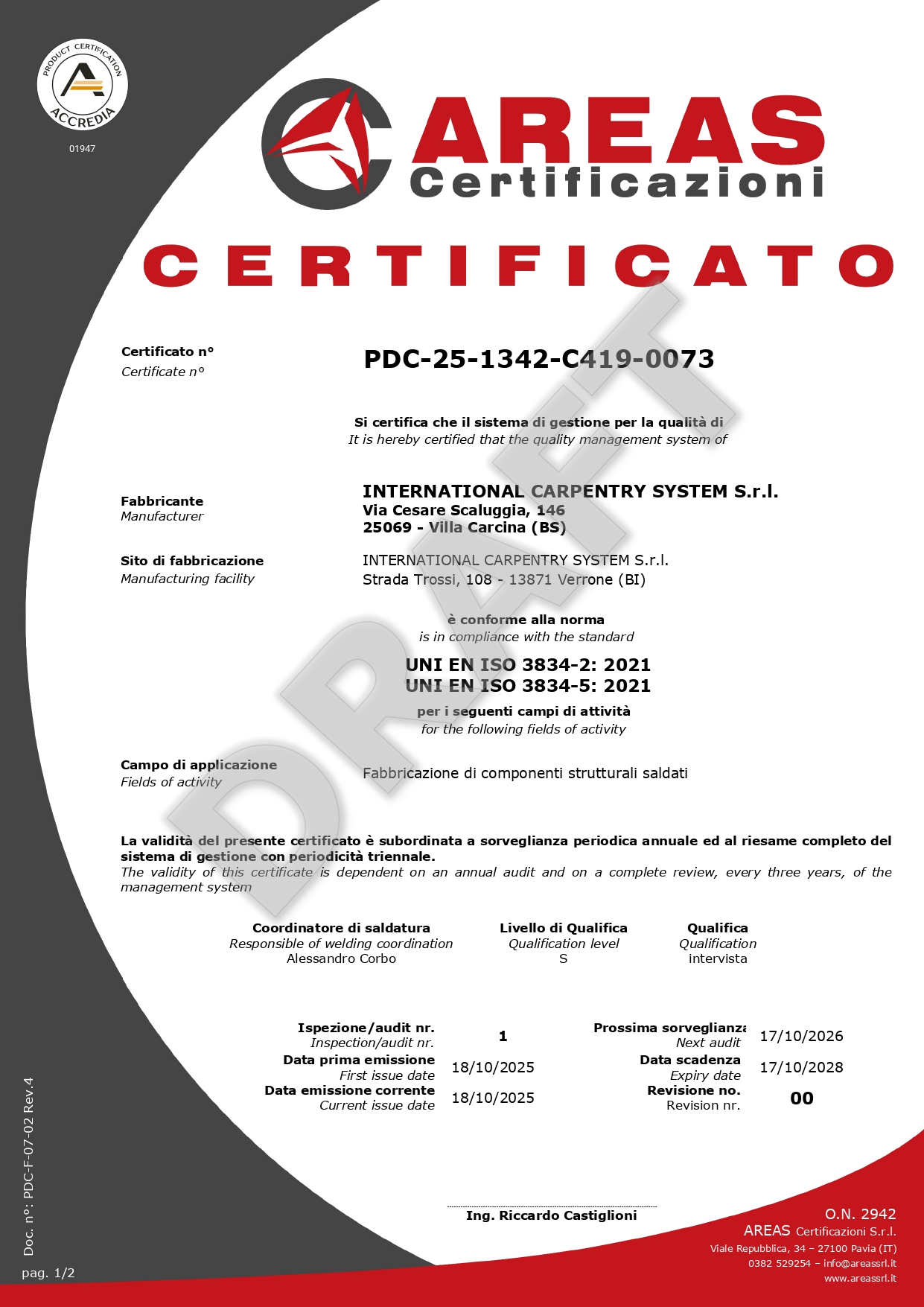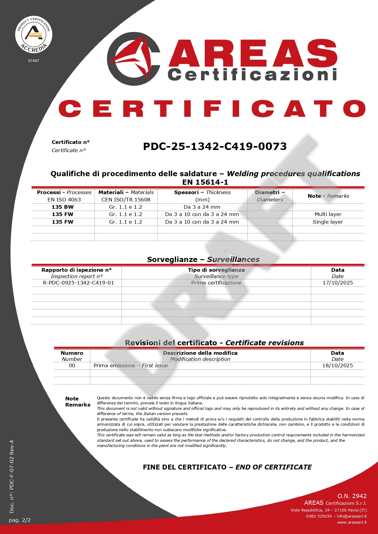 Inoltre, possediamo certificazioni AREAS, che confermano la nostra competenza, affidabilità e conformità nel settore.